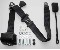 Dieser Dreipunkt Automatik Sicherheitsgurt hat einen verchromten Umlenkbeschlag. Die Befestigungsschraube wird mit einer Kunststoffkappe abgedeckt.